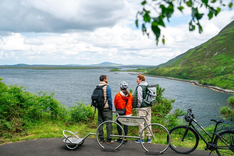 Distance cycling from Westport to Roonagh Pier: 29 km (18 miles) Choice of routes: 5 - 8 km (3-5 miles | Elevation 60-180m (195-260 ft) | 1-3 hours walking